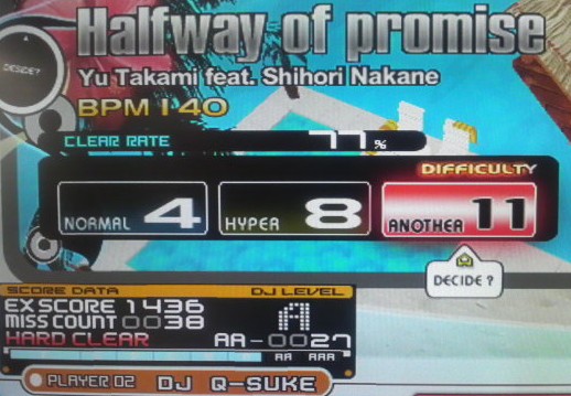 レベル11のHARDクリアが1曲増えたから今日のところはこれで我慢。